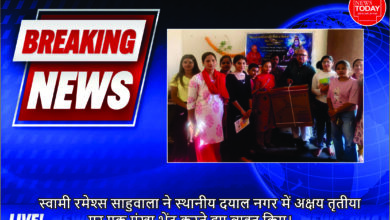 स्वामी रमेश्स साहुवाला ने स्थानीय दयाल नगर में अक्षय तृतीया पर एक पंखा भेंट करते हुए व्यक्त किए।