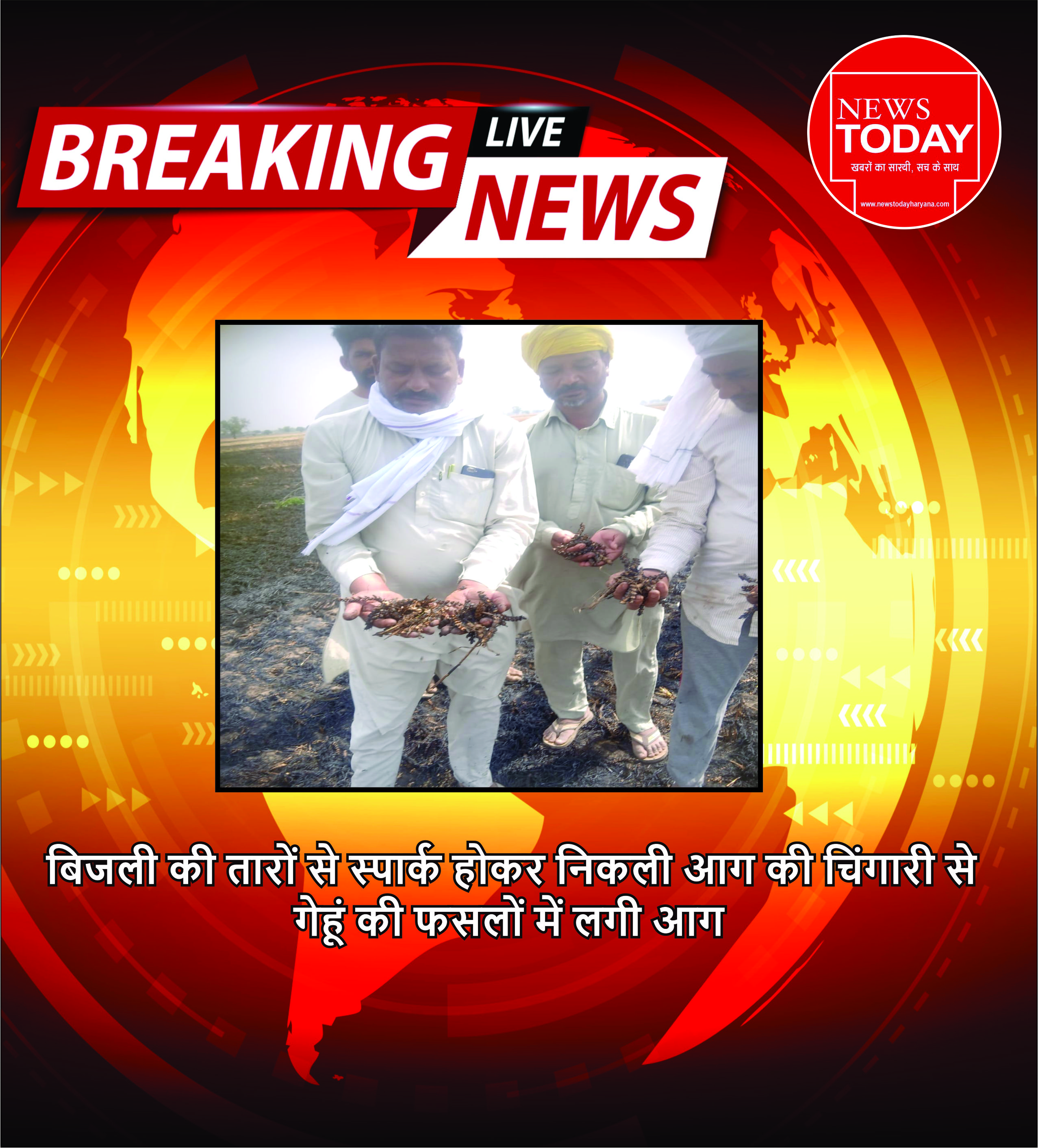 बिजली की तारों से स्पार्क होकर निकली आग की चिंगारी सेगेहूं की फसलों में लगी आग।।