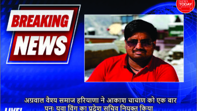 अग्रवाल वैश्य समाज हरियाणा ने आकाश चाचाण को एक बार पुनः युवा विंग का प्रदेश सचिव नियुक्त किया।