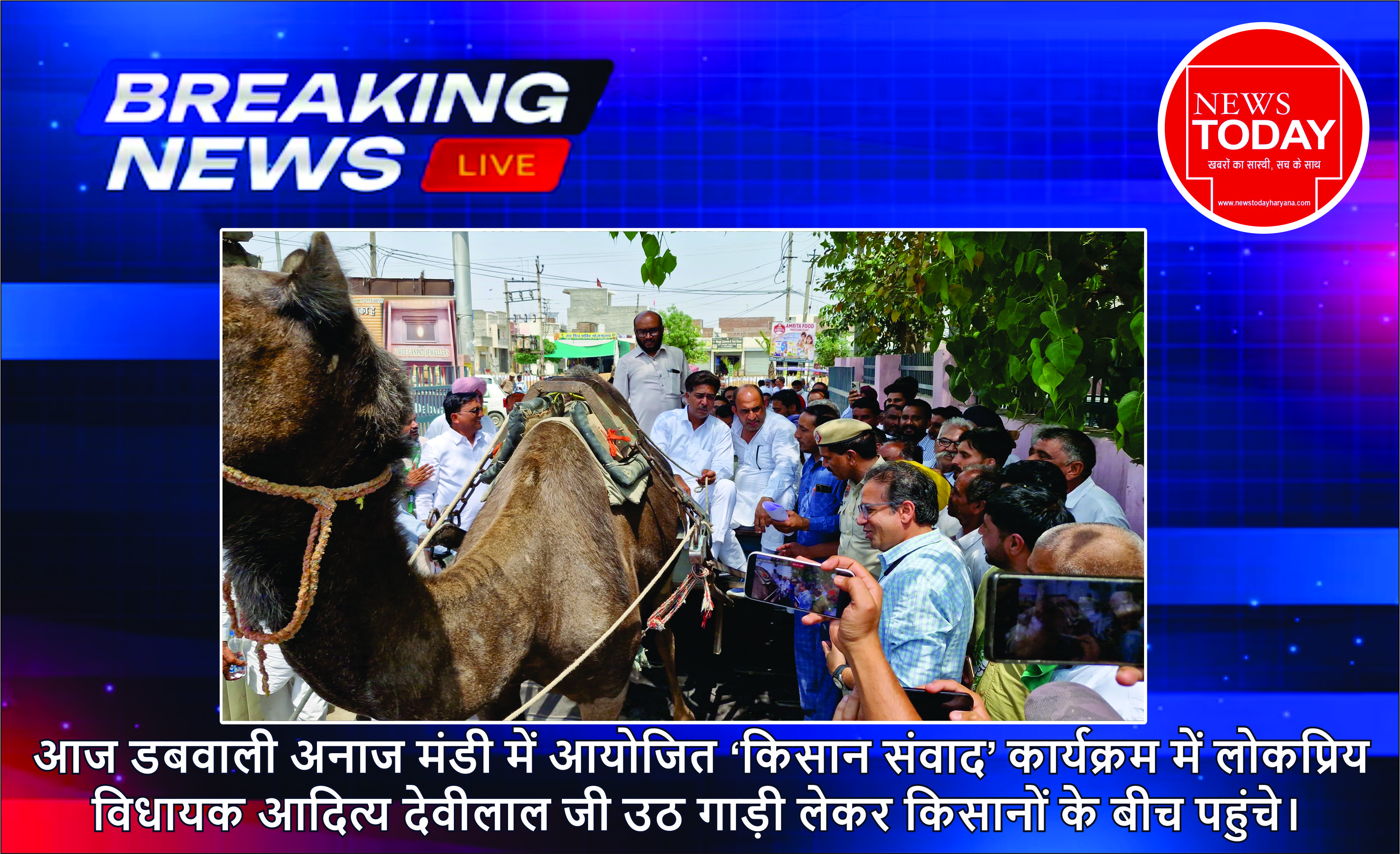 आज डबवाली अनाज मंडी में आयोजित ‘किसान संवाद’ कार्यक्रम में लोकप्रिय विधायक आदित्य देवीलाल जी उठ गाड़ी लेकर किसानों के बीच पहुंचे।