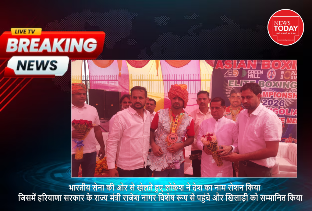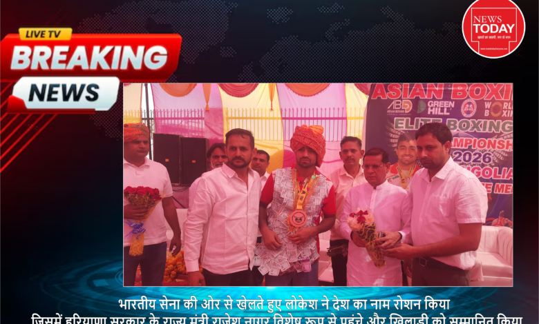 फरीदाबाद-( पूजा शर्मा ):-मंगोलिया के उलानबातर में आयोजित एशियन बॉक्सिंग एलीट चैंपियनशिप 2026 में फरीदाबाद के गांव डीग निवासी युवा बॉक्सर लोकेश चौहान ने शानदार प्रदर्शन करते हुए ब्रॉन्ज मेडल अपने नाम किया है। 80-85 किलोग्राम भार वर्ग में उन्होंने कोरिया के बॉक्सर को हराकर तीसरा स्थान हासिल किया। भारतीय सेना की ओर से खेलते हुए लोकेश ने देश का नाम रोशन किया। उनकी इस उपलब्धि पर गांव में भव्य स्वागत समारोह आयोजित किया गया, जिसमें हरियाणा सरकार के राज्य मंत्री राजेश नागर विशेष रूप से पहुंचे और खिलाड़ी को सम्मानित किया।एशियन बॉक्सिंग एलीट चैंपियनशिप 2026 में उत्कृष्ट प्रदर्शन करने वाले लोकेश चौहान के सम्मान में आयोजित समारोह में बड़ी संख्या में ग्रामीण और खेल प्रेमी मौजूद रहे। इस मौके पर राज्य मंत्री राजेश नागर ने लोकेश को बुक्का देकर सम्मानित किया और उनकी जीत पर बधाई दी।मंत्री ने कहा कि लोकेश ने विदेशी धरती पर देश का नाम रोशन कर पूरे प्रदेश को गौरवान्वित किया है। उन्होंने कहा कि यह उपलब्धि लोकेश की मेहनत, लगन और उसके परिवार के संस्कारों का परिणाम है। ऐसे खिलाड़ियों से अन्य युवाओं को भी प्रेरणा मिलती है।लोकेश चौहान ने बताया कि मंगोलिया के उलानबातर में 28 मार्च से 11 अप्रैल तक आयोजित इस चैंपियनशिप में कई देशों के खिलाड़ियों ने भाग लिया। प्रतियोगिता में पुरुष और महिला दोनों वर्ग शामिल थे। लोकेश ने 85 किलोग्राम भार वर्ग में कोरिया के बॉक्सर को हराकर तीसरा स्थान हासिल किया और ब्रॉन्ज मेडल जीता। उन्होंने यह भी बताया कि इससे पहले उन्होंने 9वीं एलीट मेन एंड वूमेन नेशनल बॉक्सिंग चैंपियनशिप में गोल्ड मेडल जीता था। यह प्रतियोगिता नोएडा में आयोजित हुई थी, जिसमें देशभर की करीब 32 टीमों ने भाग लिया था। इस आयोजन को स्पोर्ट्स अथॉरिटी ऑफ इंडिया (SAI) और बॉक्सिंग फेडरेशन ऑफ इंडिया (BFI) द्वारा आयोजित किया गया था। लोकेश के पिता नाहर सिंह और भाई सूरत चौहान ने खुशी जाहिर करते हुए कहा कि यह पूरे परिवार और गांव के लिए गर्व का क्षण है। उन्होंने कहा कि लोकेश की मेहनत रंग लाई है और उसने देश का नाम रोशन किया है। वहीं कोच राजीव गोदारा ने बताया that लोकेश शुरू से ही मेहनती और अनुशासित खिलाड़ी रहा है। उन्होंने विश्वास जताया कि आने वाले समय में वह देश के लिए और भी बड़े पदक जीतेगा।। #newstodayhry @newstodayhry