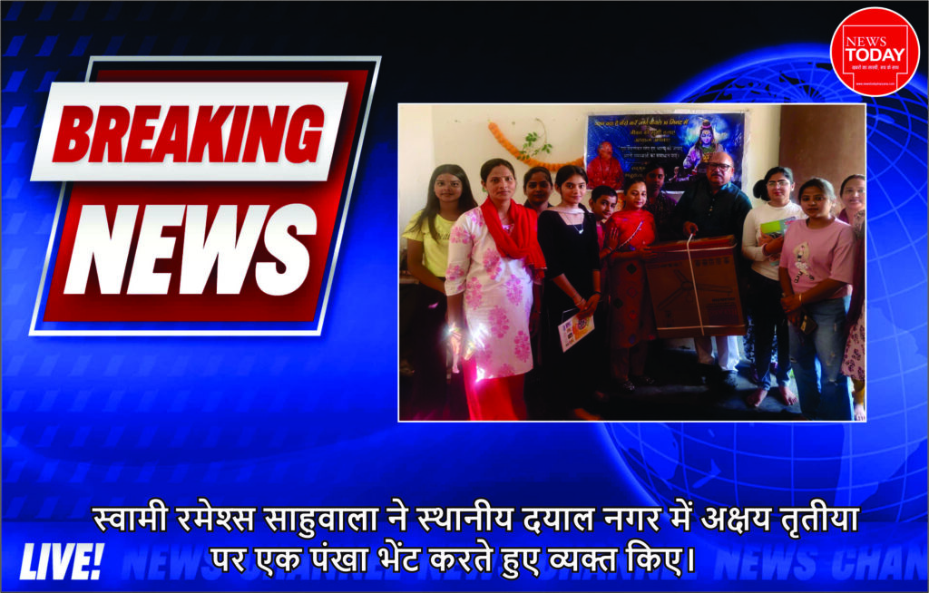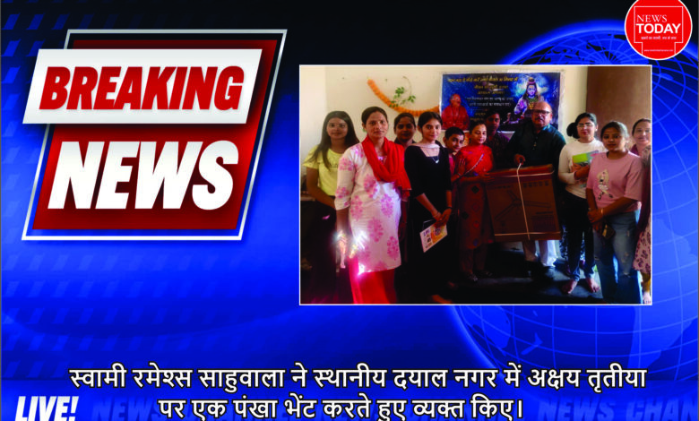 स्वामी रमेश्स साहुवाला ने स्थानीय दयाल नगर में अक्षय तृतीया पर एक पंखा भेंट करते हुए व्यक्त किए।