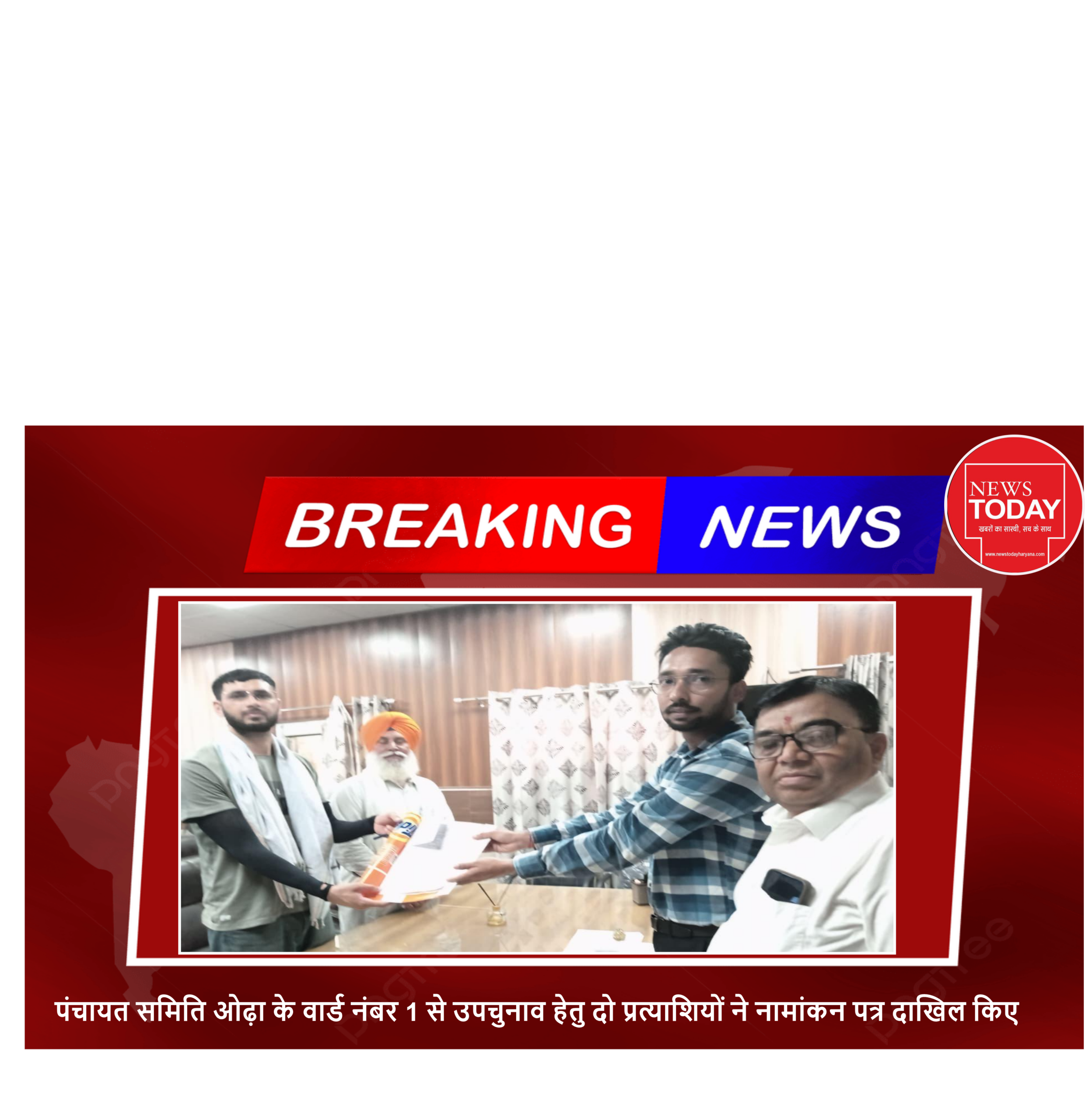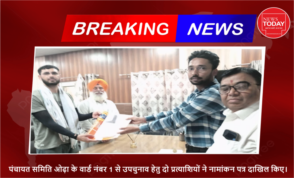ओढ़ा-(अशोक गर्ग):- पंचायती राज के उपचुनाव के नामांकन पत्र के अंतिम दिन शनिवार को ब्लॉक समिति ओढ़ा के वार्ड नंबर 1 से दो प्रत्याशियों ने फार्म जमा करवाएं। खंड विकास एवं पंचायत अधिकारी कार्यालय में एआरओ गौरव सिंगला के समक्ष आज दो प्रत्याशी अवरिन्द्र सिंह पुत्र मनजीत सिंह निवासी चट्ठा व लखविन्द्र सिंह पुत्र जसवीर सिंह निवासी नौरंग ने वार्ड नंबर एक से नामांकन पत्र दाखिल किए।जानकारी देते हुए समाज शिक्षा एवं पंचायत अधिकारी सुभाष चंद्र ने बताया कि इसी प्रकार खंड ओढ़ा के गांव चकेरिया के वार्ड नंबर 3 से दो प्रत्याशी बेअंत पुत्र पूर्ण व लवप्रीत सिंह पुत्र मेजर सिंह ने पंच पद के लिए और गांव सिंधपूरा के वार्ड नंबर 6 से एक नामांकन पत्र दाखिल किया गया है। उन्होंने आगे बताया कि उपचुनाव के लिए आमंत्रित पत्रों की जांच 27 अप्रैल को की जाएगी और 28 अप्रैल को प्रत्याशी अपना नाम वापिस ले सकते है व उसी दिन शाम को चुनाव चिन्ह जारी कर दिया जाएगा।छायाचित्र ओढ़ा खंड कार्यालय ओढ़ा में ब्लॉक समिति के प्रत्याशी एआरओ के समक्ष नामांकन पत्र दाखिल करते हुए।। #Newstodayhry @Newstodayhry